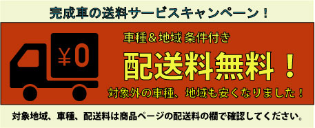 --完成車キャンペーン!-- 2018年10月15日 送料無料の地域、車種を増やしました。北海道、沖縄、離島は対象外、他の地域は車種により、条件が異なります。 また5万円以下、21インチホイール以上等、対象外の車種がございます。対象外の車種も以前より送料を安く設定しております。実際の送料は商品ページにてご確認ください。 «前 次» What's New