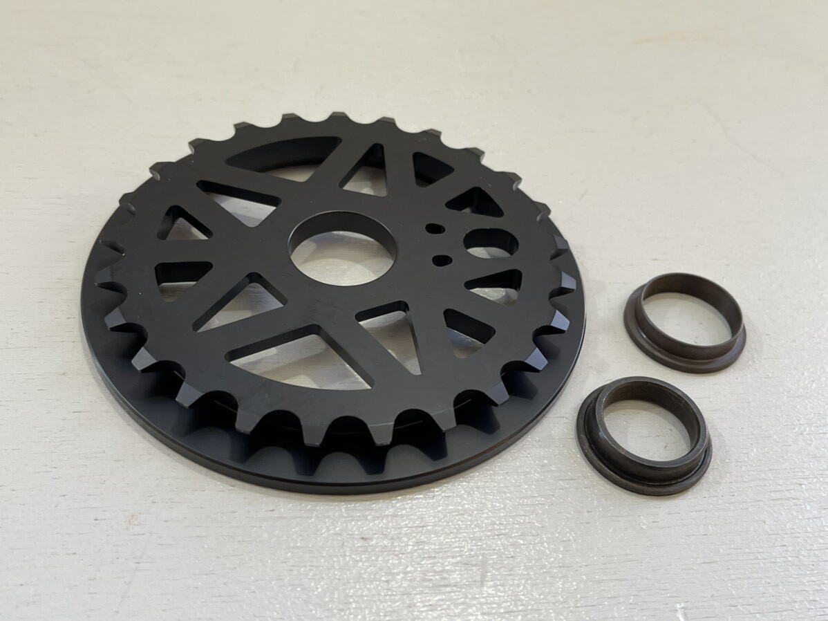 STRANGERの ガード付きスプロケット! 大胆な肉抜きでガード付きの割には軽量です。