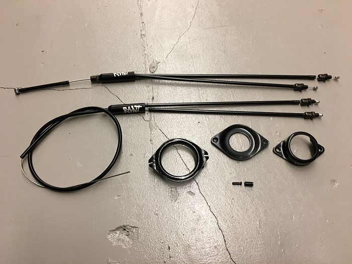 *ジャイロの装着には完成車やパーツによってはそのままで装着が難しい場合が多くございます。現車合わせで、該当する部分の交換や加工が必要になってきます。まずフレームのヘッドチューブ、ヘッドセットにローター自体が引っかからないで入る事が大前提となりますので形状や外径にご注意ください。アッパープレートがステムに干渉する場合は加工や交換が必要となります。重要な部分としてジャイロプレートとフレーム側のタブに35〜40mm程度の間隔が必要となります。ヘッドスペーサーを入れて間隔が作れない場合はステムを薄い物にする、フロントフォークをステアーチューブが長い物に交換する必要がある場合がございます。ブレーキレバーのケーブルアジャスターとタイコを嵌める位置でケーブルの調節がきちんとできない場合がございます。その場合はレバーの交換か、ナープスでの調整が必要になってきます。ご自分で作業が難しい場合は詳しいライダーにアドバイスをもらうか、ショップでの作業が良いと思います。