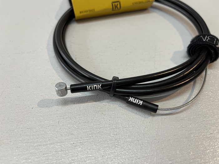 KINKのロゴが入ったリニアスリックケーブルです。バースピン等のねじれに対してブレーキの引きに影響しません。