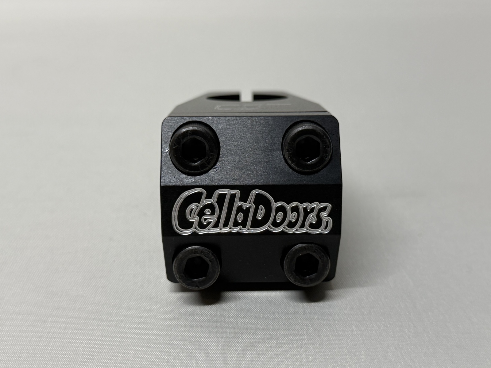 トップにCELLADOORSのアイコンでもあるドアロゴ、フロントにはグラフィックデザイナーFRKOがデザインしたロゴを削り出し加工で配置しています。