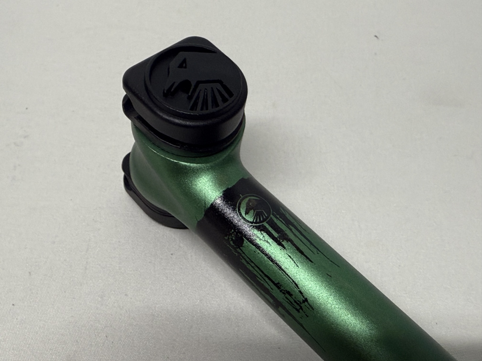 角度調整部分の横にある、1本のボルトで止める斬新なデザインのシートポストです。レールタイプのシートに適合します。