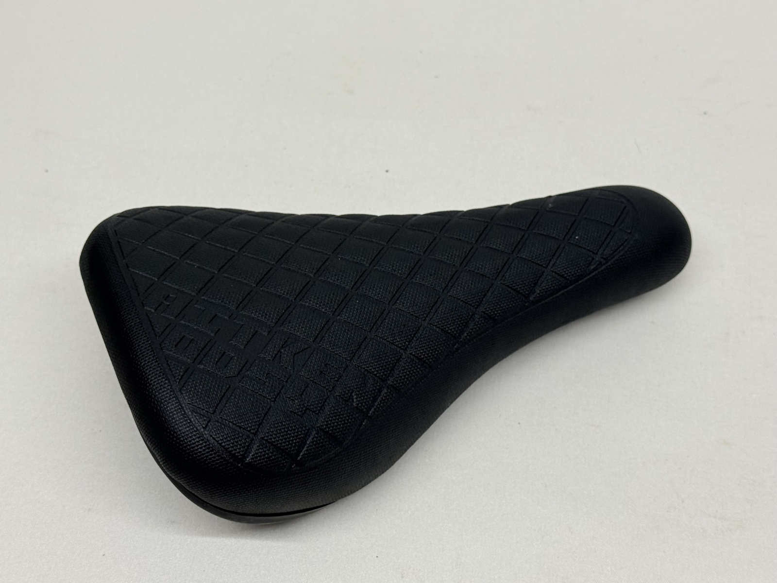 彼の要望により、シニアサドルより大きめであるが、スリムなボディに滑りにくいセミグリップタイプのトップカバーを使用。彼の名前とオデッセイのロゴがエンボス処理で入ります。中空クロモリレールにねじれ防止の補強ブレースがバックに付きます。BMXだけではなく、MTBなどにもお薦め。